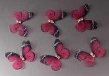 Бабочки шифоновые со стразами (малиновый) 3 см (10 шт)