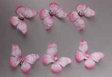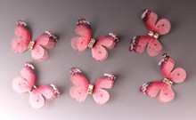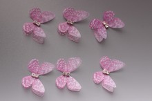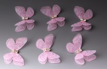 Бабочки шифоновые со стразами (розовый) 3 см (10 шт)