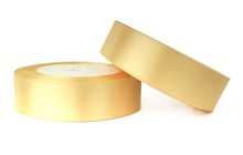 Однотонная атласная лента (светлое золото), 25мм * 25 ярдов (+-1)