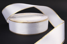 Атласная лента с люрексом (красный, золото), 25мм* 25 ярдов(+-1)