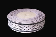 (Уценка)Репсовая лента с рисунком "Узор" (белый), 25мм * 25 ярдов (+-1м)