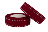 Купить репсовую ленту бордового цвета с рисунком "Белые точки по краям" по оптовым ценам с доставкой удобным для вас способом, Вам поможет наш интернет-магазин "Лентофф".