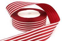 Купить атласную ленту бордового цвета с рисунком "Полоса" (белая) по оптовой цене и сервисом высочайшего уровня всегда можно в магазине lentoff.ru.