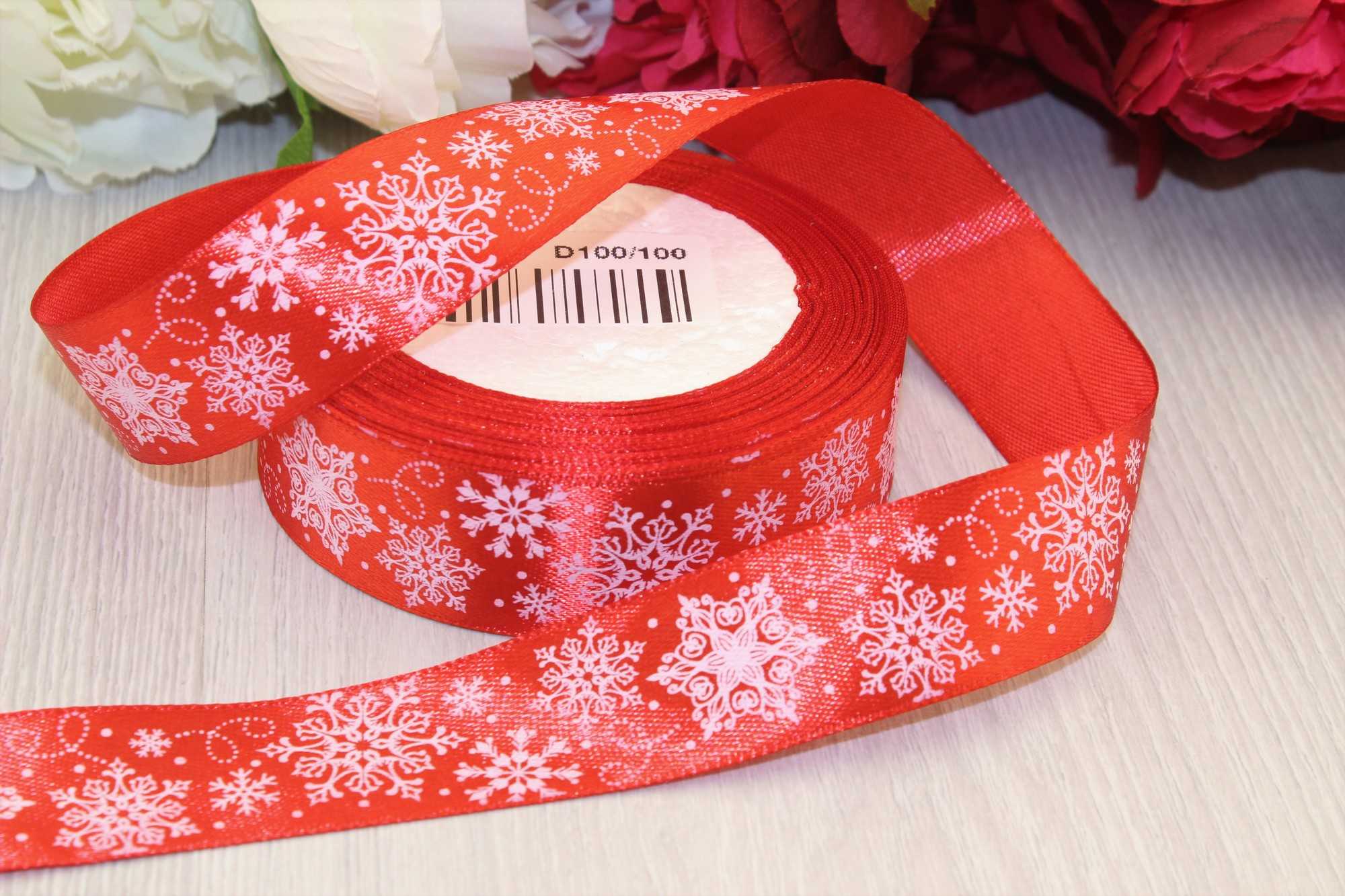 Атласная лента с рисунком "Снежинки" (красный), 25мм * 25 ярдов(+-1м)-гладкая, нежная, приятная на ощупь и радующая глаз, прекрасно подойдет для драпировки одежды и порадует своим качеством при изготовлении оригинальных вещей и рукоделии, а рисунок с новогодней тематикой поможет сделать особенным и незабываемым всеми любимый праздник, создаст особенное настроение и несомненно подарит частичку волшебства в любой дом.