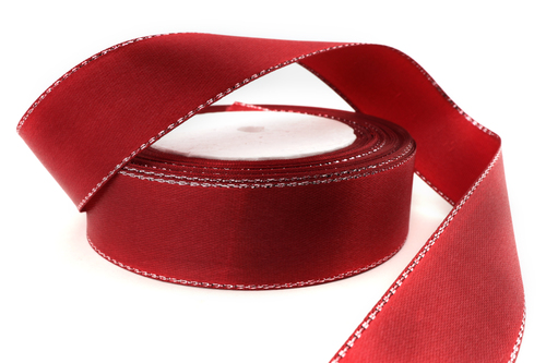 Купить атласную ленту бордового цвета с люрексом (серебро) по оптовым ценам с гарантией качества и доставкой в любой регион страны очень удобно в нашем интернет-магазине lentoff.ru.