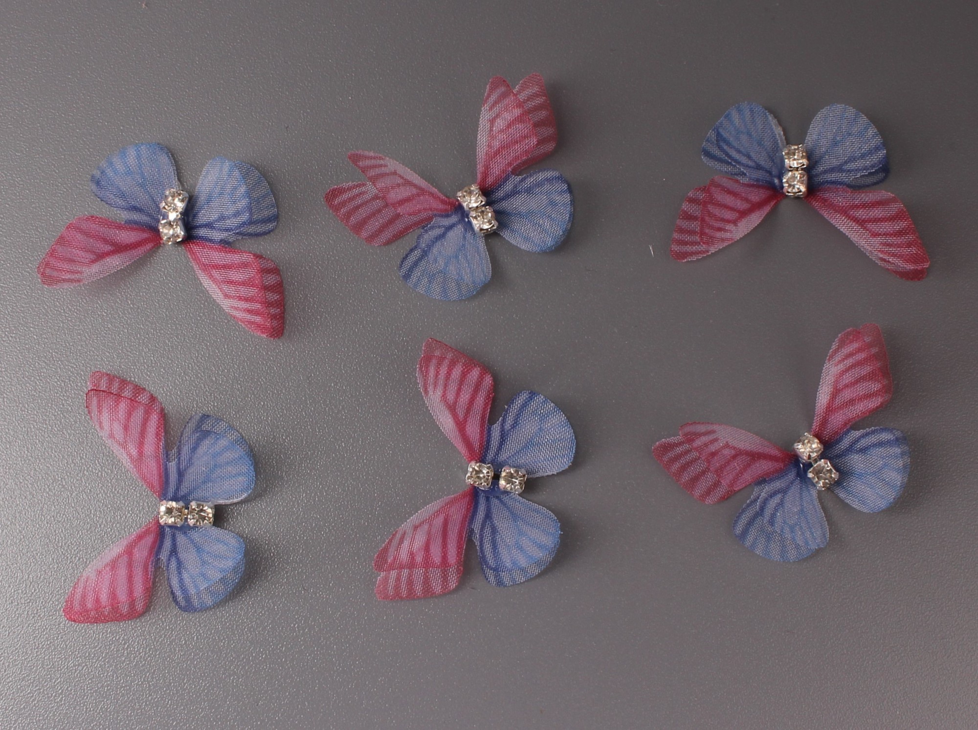 Бабочки шифоновые со стразами (розово-голубой) 3 см (10 шт)