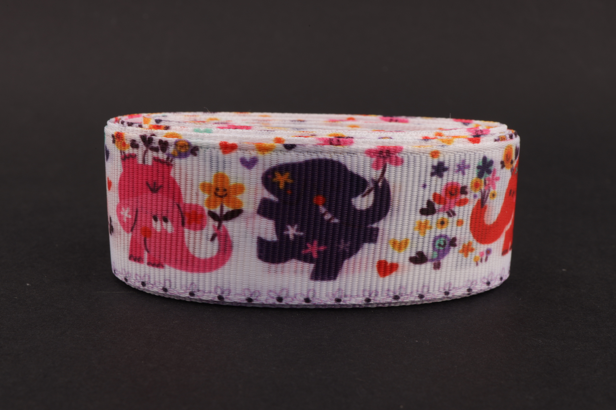 Купить репсовую двустороннюю ленту с рисунком "Слоники"(мультики, 3D) 25мм * 6 ярдов оптом и в розницу по оптовым ценам с доставкой во все города России можно в нашем интернет-магазине.