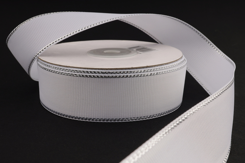 Репсовая лента с люрексом (белый, серебро), 25мм * 20 ярдов (+-1)