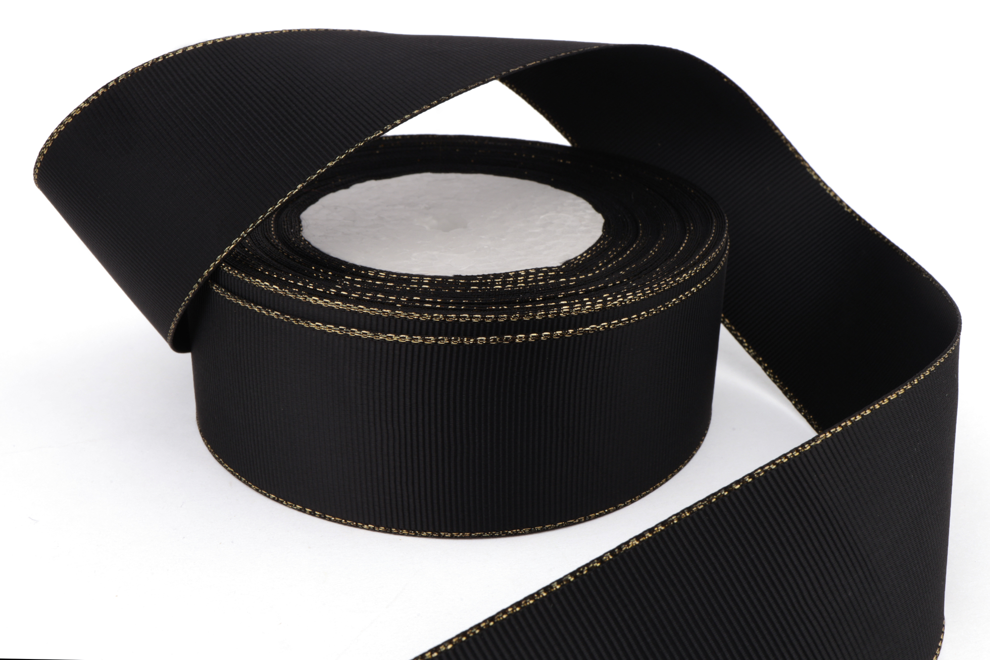 Купить репсовую ленту черного цвета с люрексом (золото) по оптовым ценам с доставкой удобным для вас способом, Вам поможет наш интернет-магазин.
