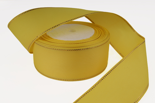 Репсовая лента с люрексом (желтый, золото), 40мм * 20 ярдов (+-1) используются как при производстве текстиля, обуви, мебели, так и при декорировании и отделке различного рода материалов. Вы сможете применить репсовую ленту для украшения открыток, упаковки подарков и товаров, декорирования сумочки, ремня.