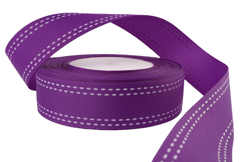 Купить репсовые ленты фиолетового цвета с рисунком "Белая двойная прострочка по краям" в любое удобное для вас время всегда возможно в нашем интернет-магазине. Мы гарантируем качество, сервис высокого уровня и внимательность к любому вашему желанию.