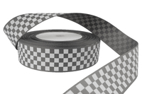 Купить репсовую ленту темно-серого цвета с рисунком "Клетка" Вы можете в нашем интернет-магазине lentoff.ru по оптовым ценам.