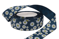 Репсовая лента с рисунком "Ромашки" (джинс), 25мм * 25 ярдов (+-1м) с легкостью украсит любой предмет Вашего творчества, сделав его стильным и красочным. Вы сможете применить репсовую ленту для отделки изделий из плотной ткани или кожи, создать всевозможные предметы декора, банты, заколки, ободки, а также использовать как декоративный элемент в скрапбукинге и кардмэйкинге.