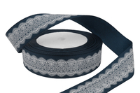 Купить репсовую ленту цвета джинс с рисунком "Кружево" оптом и в розницу по оптовым ценам с доставкой во все города России можно в нашем интернет-магазине lentoff.ru.