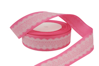 Купить репсовую лентнту розового цвета с рисунком "Кружево" по оптовым ценам с доставкой удобным для вас способом, Вам поможет наш интернет-магазин "Лентофф".