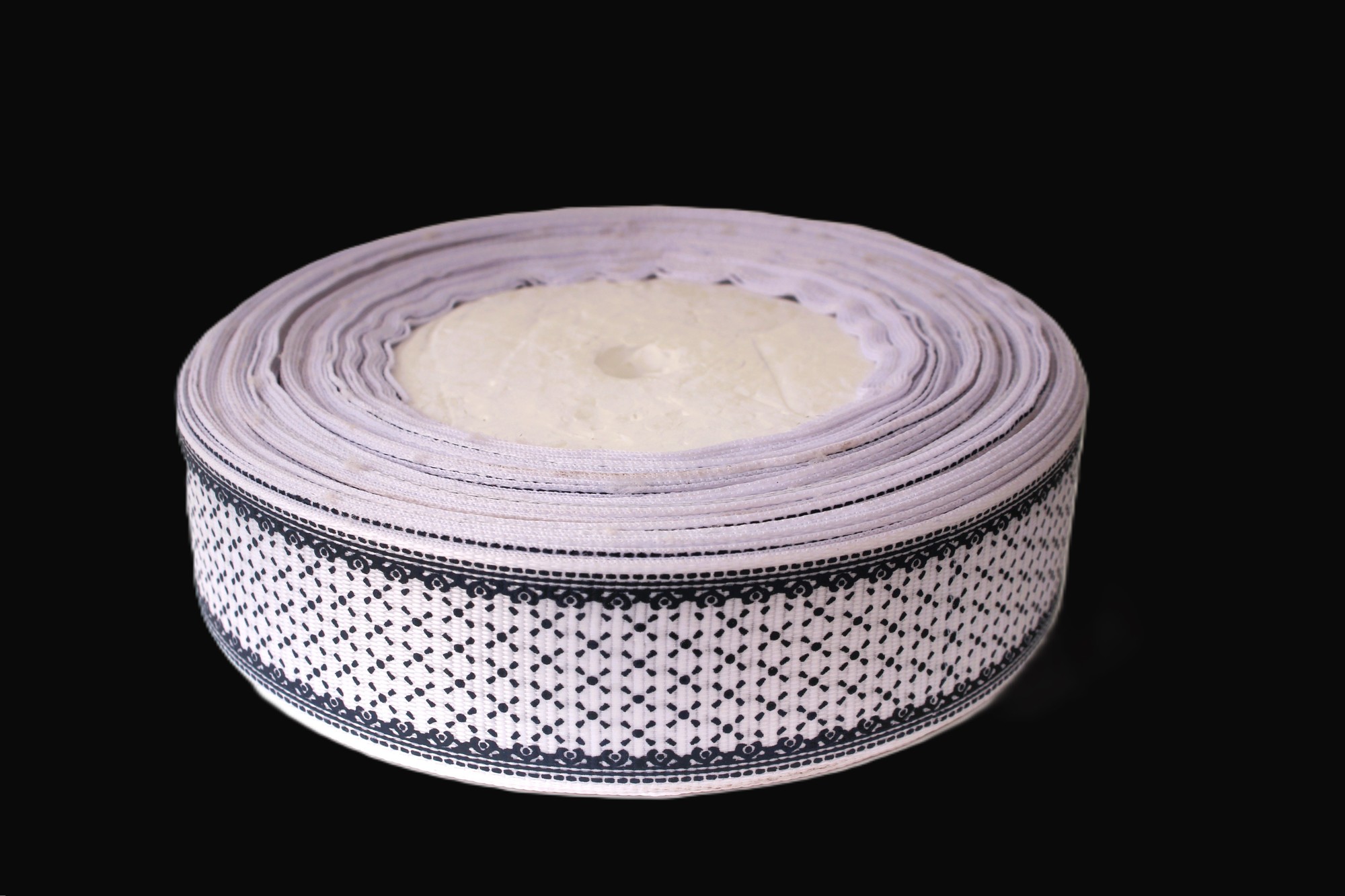 (Уценка) Репсовая лента с рисунком "Узор" (белый), 25мм * 25 ярдов (+-1м)