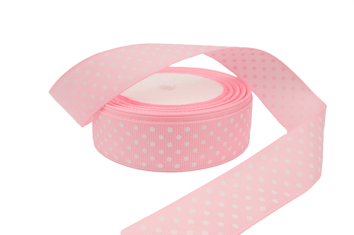 Купить репсовую ленту нежно-розового цвета в горошек по оптовой цене с гарантией качества в любое время можно в нашем интернет-магазине: lentoff.ru
