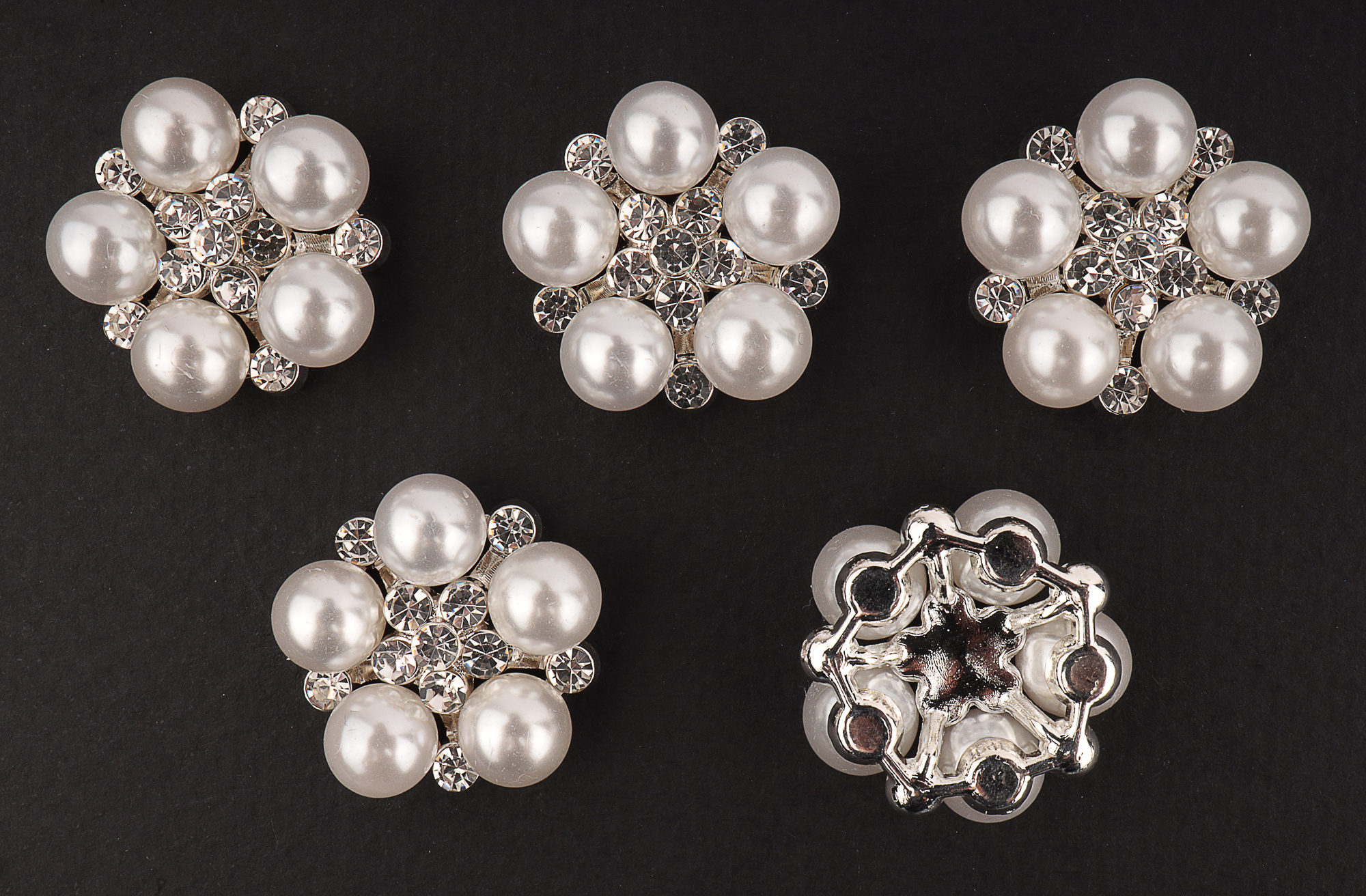 Флоризель металл (серебро) d-20мм, упак. 5шт украшены бусинами под жемчуг, стразами. Используются для украшения во флористике для декорирования, скрапбукинге при изготовлении открыток и альбомов, канзаши, бантиков из лент - украшают серединку, брошей, заколок.