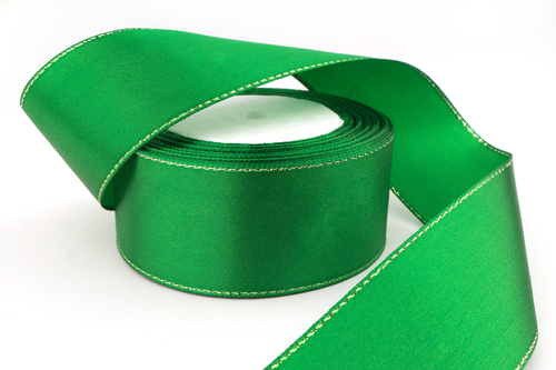 Купить атласную ленту зеленого цвета с люрексом (серебро) по оптовой цене с гарантией качества в любое время можно в нашем интернет-магазине: lentoff.ru
