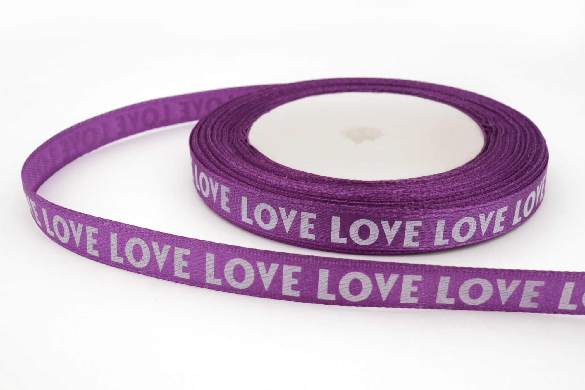 Атласная лента с рисунком "LOVE" (фиолетовый), 10мм * 25 ярдов(+-1) станет необходимостью для сильных, решительных и целеустремленных людей, не боящихся экспериментов со своими образами. Атласные ленты прекрасно подойдут для оформления букетов живых цветов, декорирования и реставрации одежды и обуви, развития творчества своего и своих близких.