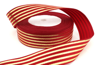 Купить атласную ленту бордового цвета с рисунком "Полоса" (золото) по оптовой цене и сервисом высочайшего уровня всегда можно в магазине lentoff.ru.