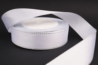Купить атласную ленту кипельно-белого цвета с люрексом (серебро) по оптовой цене с гарантией качества в любое время можно в нашем интернет-магазине: lentoff.ru