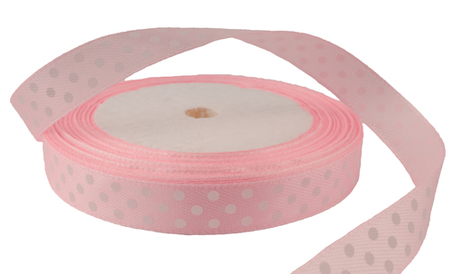 Атласная лента в горошек (розовый), 12мм * 25 ярдов(+-1) - один из самых распространенных материалов в рукоделии. Её применяют для декора различных изделий, подарочных коробок, одежды и интерьера, изготовления игрушек и цветов, вышивки картин, в скрапбукинге и для создания неповторимых изделий в технике канзаши.