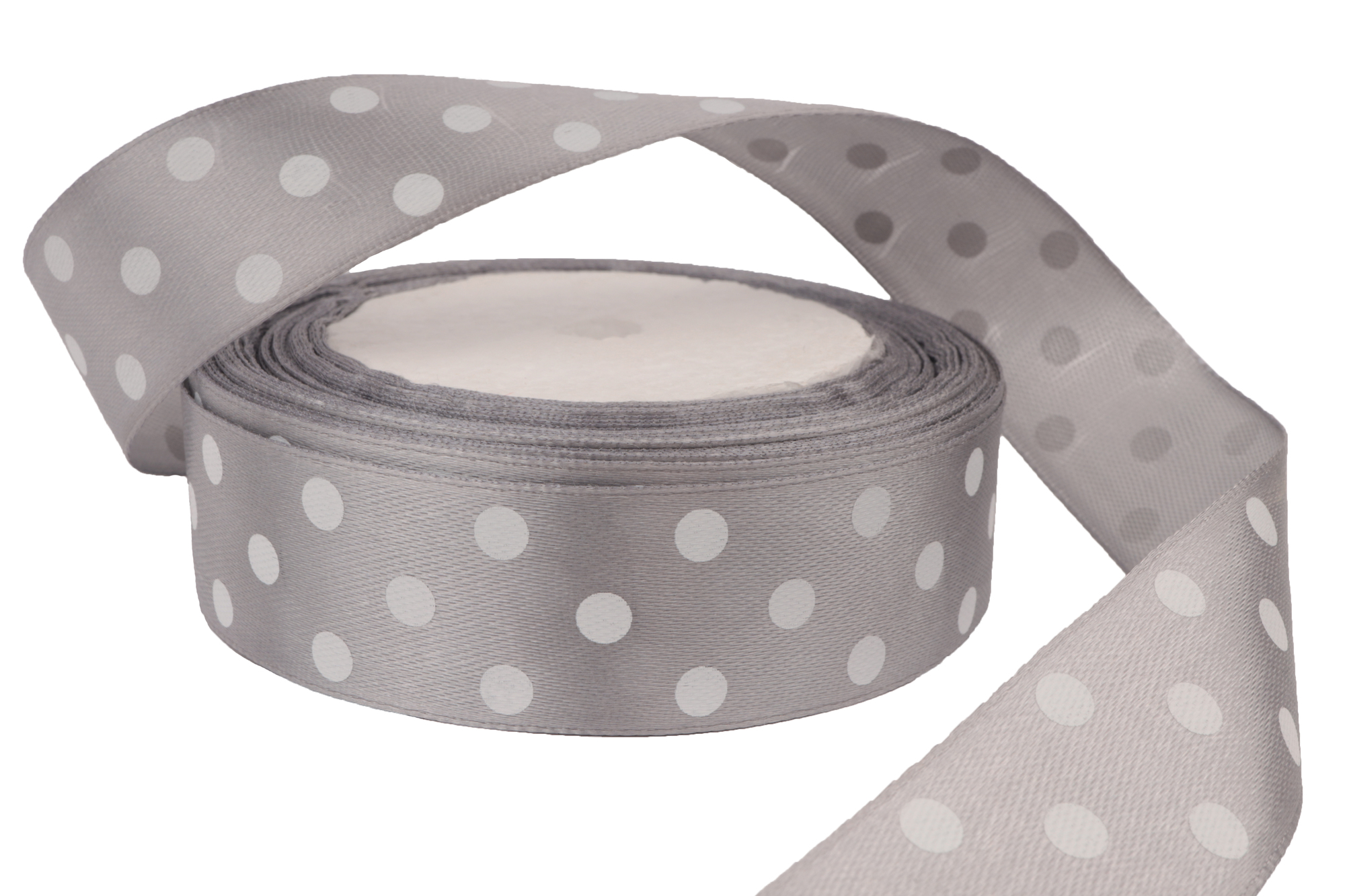 Атласная лента в горошек (серый), 25мм * 25 ярдов(+-1)- один из самых распространенных материалов в рукоделии. Её применяют для декора различных изделий, подарочных коробок, одежды и интерьера, изготовления игрушек и цветов, вышивки картин, в скрапбукинге и для создания неповторимых изделий в технике канзаши.