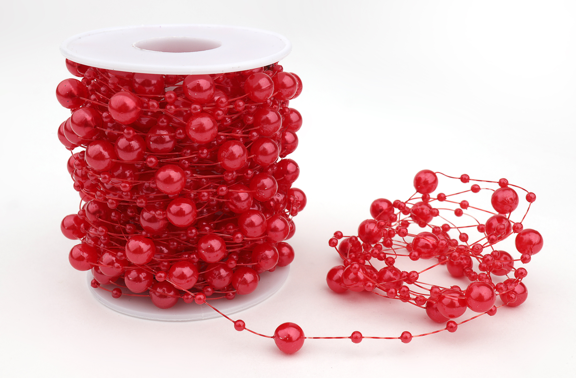 Бусы на леске (красный), 3-8мм * 20 ярдов(+-1) используются при создании свадебных аксессуаров. Они могут быть представлены как в качестве самостоятельного элемента декора (гирлянд и штор), так и в виде вышивки и аппликаций, в декорировании букетов невесты и других украшениях. Бусины на леске используются в оформлении деталей одежды, костюмов для выступлений, а также при изготовлении бижутерии и украшений для волос.