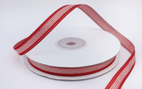 Купить декоративную ленту цвет красный с белой нитью и люрексом золото в любое удобное для вас время всегда возможно в нашем интернет-магазине "Лентофф".