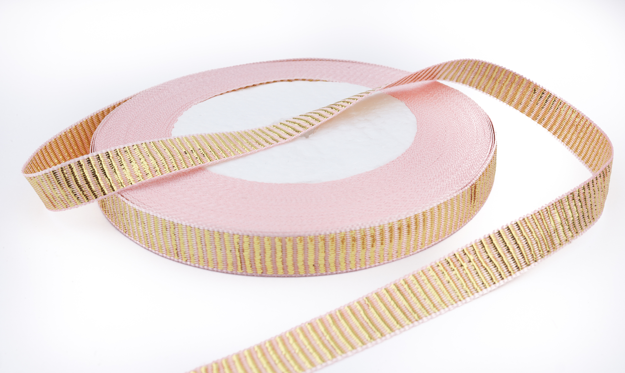 Декоративная лента с рисунком "Золотистые полосы" (нежно-розовый), 10мм * 20 ярдов (+-1)