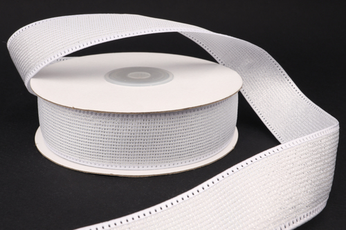 Купить декоративную ленту белого цвета с белой нитью и люрексом серебро в любое удобное для вас время всегда возможно в нашем интернет-магазине "Лентофф".