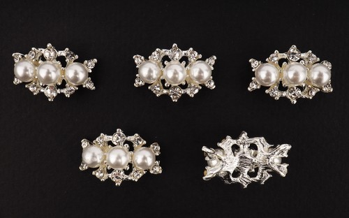 Флоризель металл (серебро), 21*15мм, упак. 5шт украшены бусинами под жемчуг, стразами. Используются для украшения во флористике, для декорирования, скрапбукинге, свадебной тематике, при изготовлении открыток и альбомов, канзаши, бантиков из лент - украшают серединку, брошей, заколок.