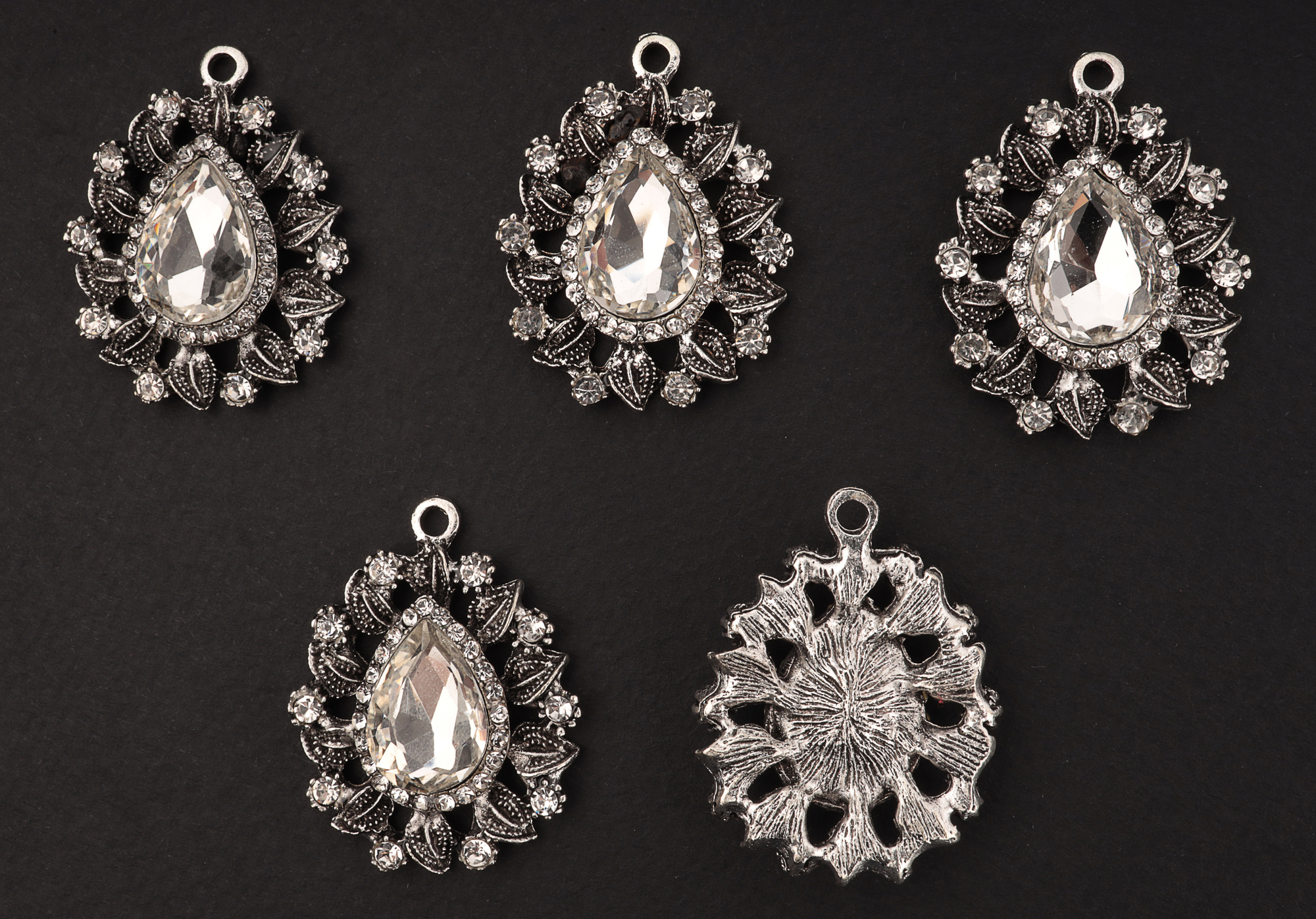 Флоризель металл (серебро), 29*25мм, упак. 5шт используются для украшения во флористике для декорирования, скрапбукинге при изготовлении открыток и альбомов, канзаши, бантиков из лент - украшают серединку, брошей, заколок.