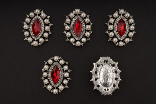 Флоризель металл (серебро), 31*25мм, упак. 5шт украшены бусинами под жемчуг, стразами. Используются для украшения во флористике, для декорирования, скрапбукинге, свадебной тематике, при изготовлении открыток и альбомов, канзаши, бантиков из лент - украшают серединку, брошей, заколок.