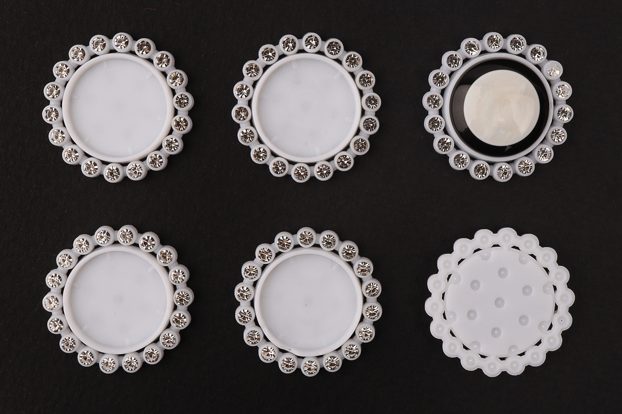 Основы-рамки пластик со стразовой окантовкой (белый), внутр.d 16мм, упак. 50шт (+-5) вы сможете применить для декорирования предметов различного рода творчества. С помощью основы рамки вы сможете украсить шкатулку, ободок, создать уникальную аппликацию или бижутерию. А текстурный рисунок по краю придаст вашему изделию неповторимый вид.
