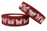 Репсовая лента с рисунком "Бабочки" (бордовый), 25мм * 25 ярдов (+-1м) с легкостью украсит любой предмет Вашего творчества, сделав его стильным и красочным. Вы сможете применить репсовую ленту насыщенного красного цвета для отделки изделий из плотной ткани или кожи, создать всевозможные предметы декора, банты, заколки, ободки, а также использовать как декоративный элемент в скрапбукинге и кардмэйкинге.