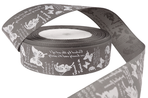 Купить репсовые ленты темно-серого цвета с рисунком "Бабочки и надписи" в любое удобное для вас время всегда возможно в нашем интернет-магазине. Мы гарантируем качество, сервис высокого уровня и внимательность к любому вашему желанию.