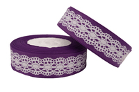 Купить репсовую ленту фиолетового цвета с рисунком "Кружево" 25мм * 25 ярдов (+-1м) как оптом, так и в розницу по оптовым ценам можно в нашем интернет-магазине.