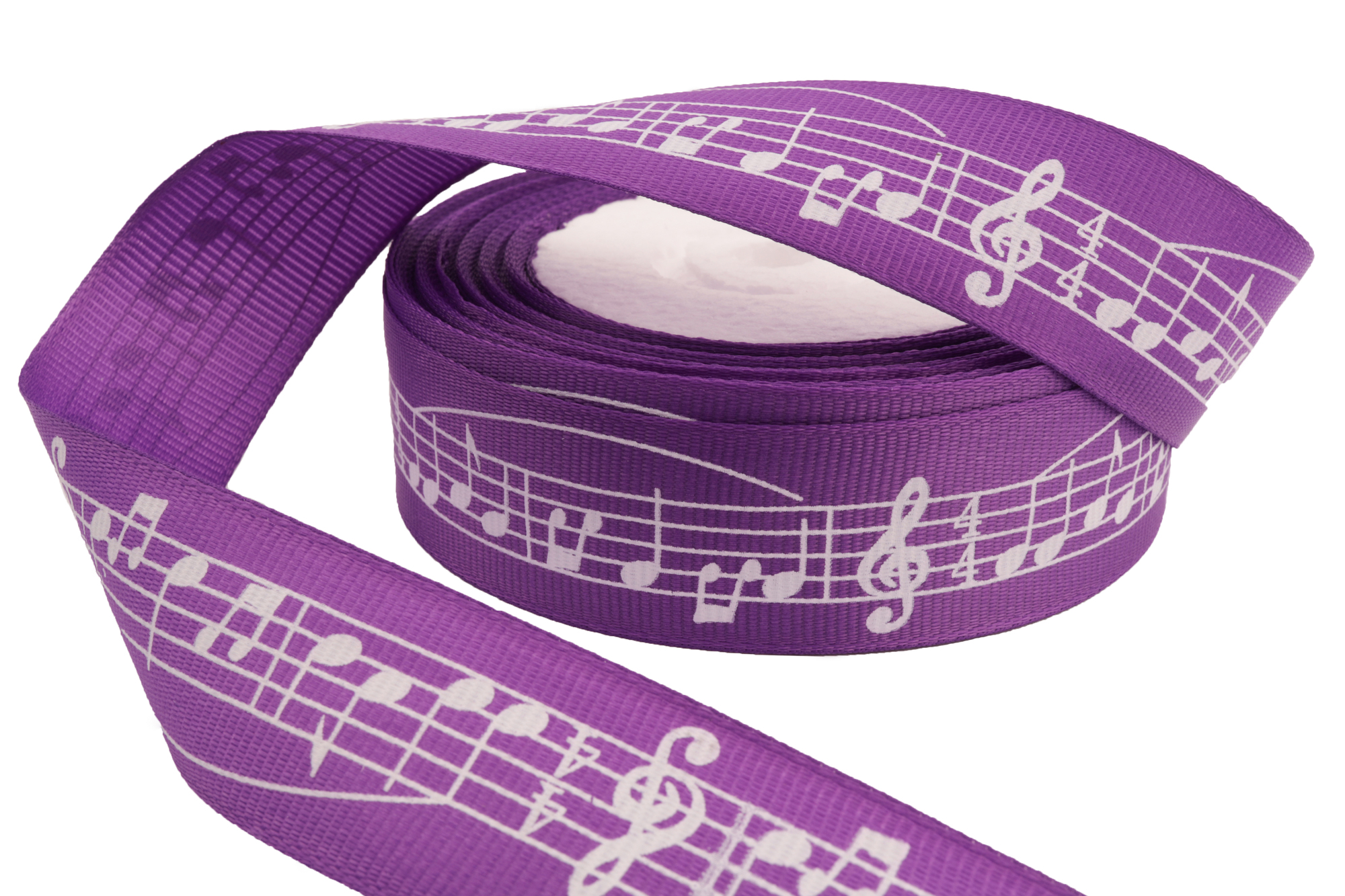 Купить репсовую ленту фиолетового цвета с рисунком "Мелодия" 25мм * 25 ярдов (+-1м) оптом и в розницу, по оптовым ценам с доставкой во все города России, можно в нашем интернет-магазине.