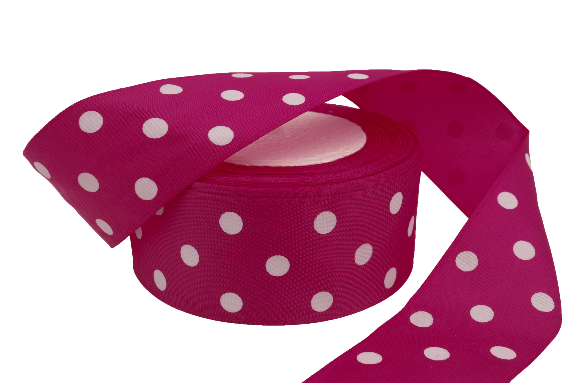 Купить репсовую ленту насыщенно-розового цвета в горошек оптом и в розницу по оптовым ценам с доставкой во все города России можно в нашем интернет-магазине "Лентофф".