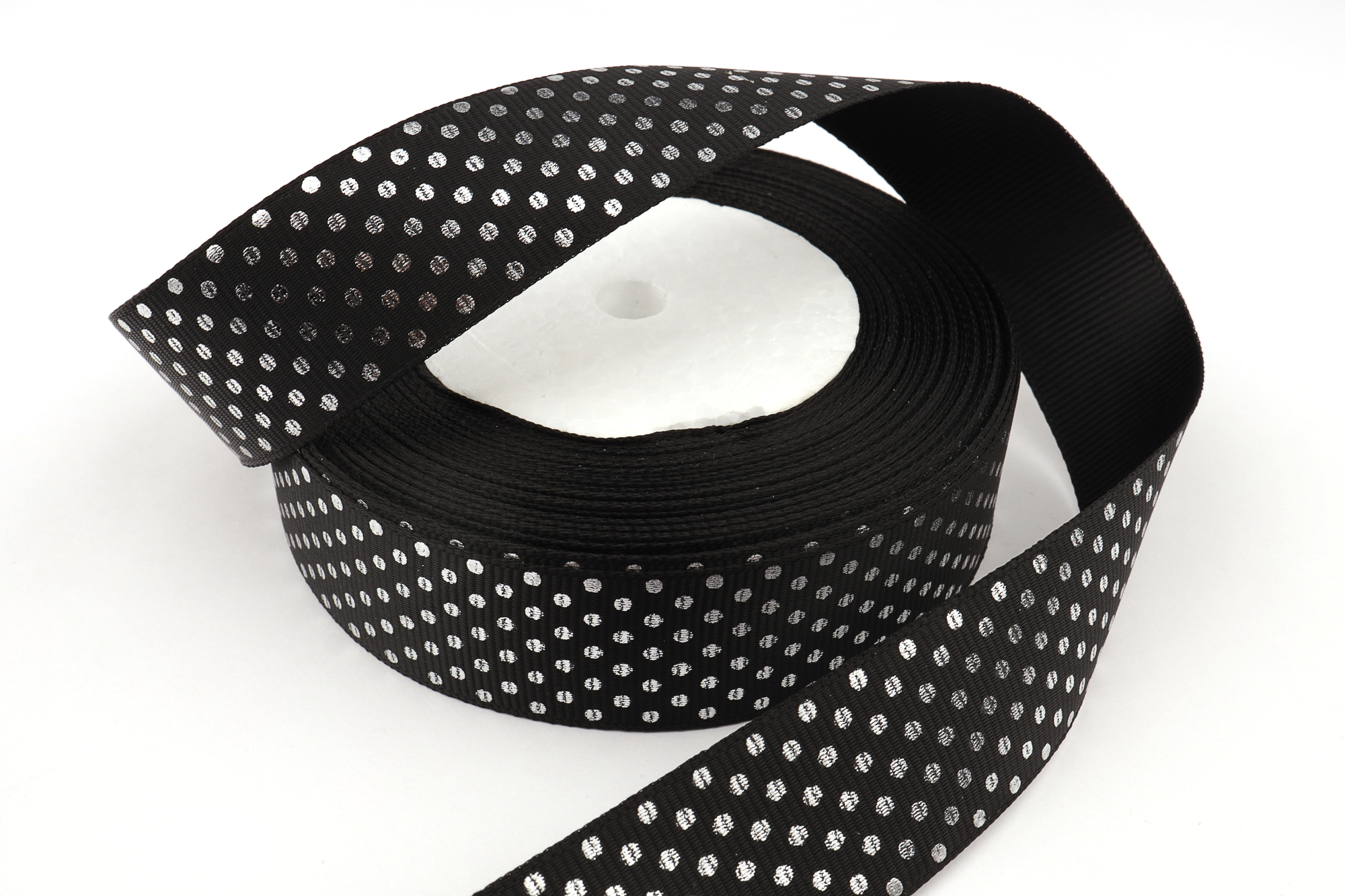 Купить репсовую ленту черного цвета в серебряный горошек по оптовой цене с гарантией качества в любое время можно в нашем интернет-магазине: lentoff.ru