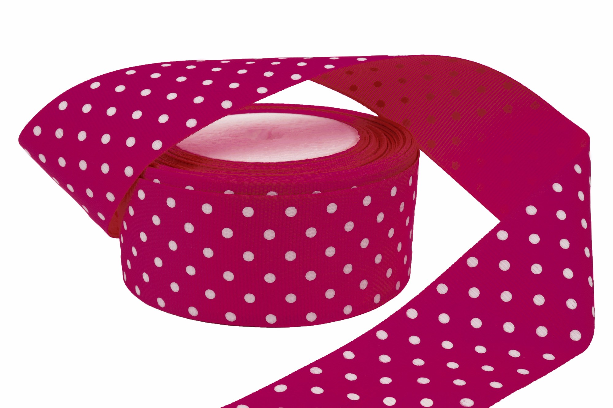 Купить репсовую ленту насыщенно-розового цвета в горошек оптом и в розницу по оптовым ценам с доставкой во все города России можно в нашем интернет-магазине "Лентофф".