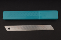 Лезвия для канцелярских ножей имеют отличительную особенность: по всей длине лезвия через равные промежутки имеются канавки под углом к оси лезвия. Сделано это для быстрой «заточки» лезвия. Когда в процессе работы лезвие затупляется, с помощью плоскогубцев, затупившийся кусочек по канавке отламывается и нож снова становится таким же острым как новый.